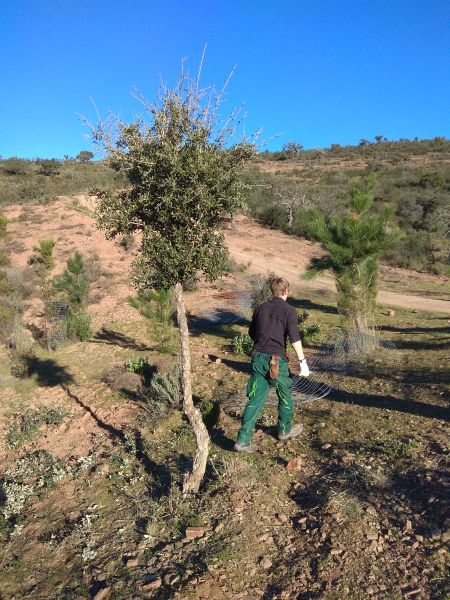 Ein Auszubildender bei Kulturarbeiten an der Korkeiche