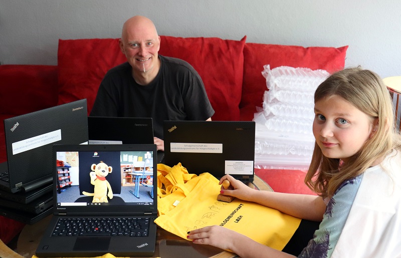 Seit der Schließung der Schulen in der Corona-Zeit sind die Schülerinnen und Schüler am LBZH im 'Homeschooling'. Unterrichtsmaterialien bekommen sie zugeschickt oder über das I-Serv. Teilweise findet der Unterricht per Videokonferenz statt. Leider stellte sich heraus, dass einige Schüler*innen über kein angemessenes Endgerät verfügen.