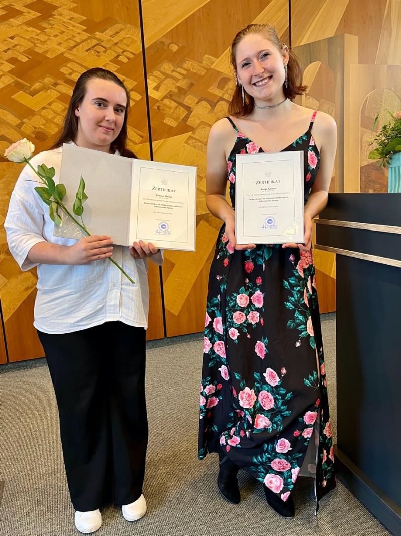 Elmisa Maliqi und Sonja Griese haben am 19.06.2024 die Abschlussprüfung zur „Fachpraktikerin im Maßschneiderhandwerk“ bestanden.