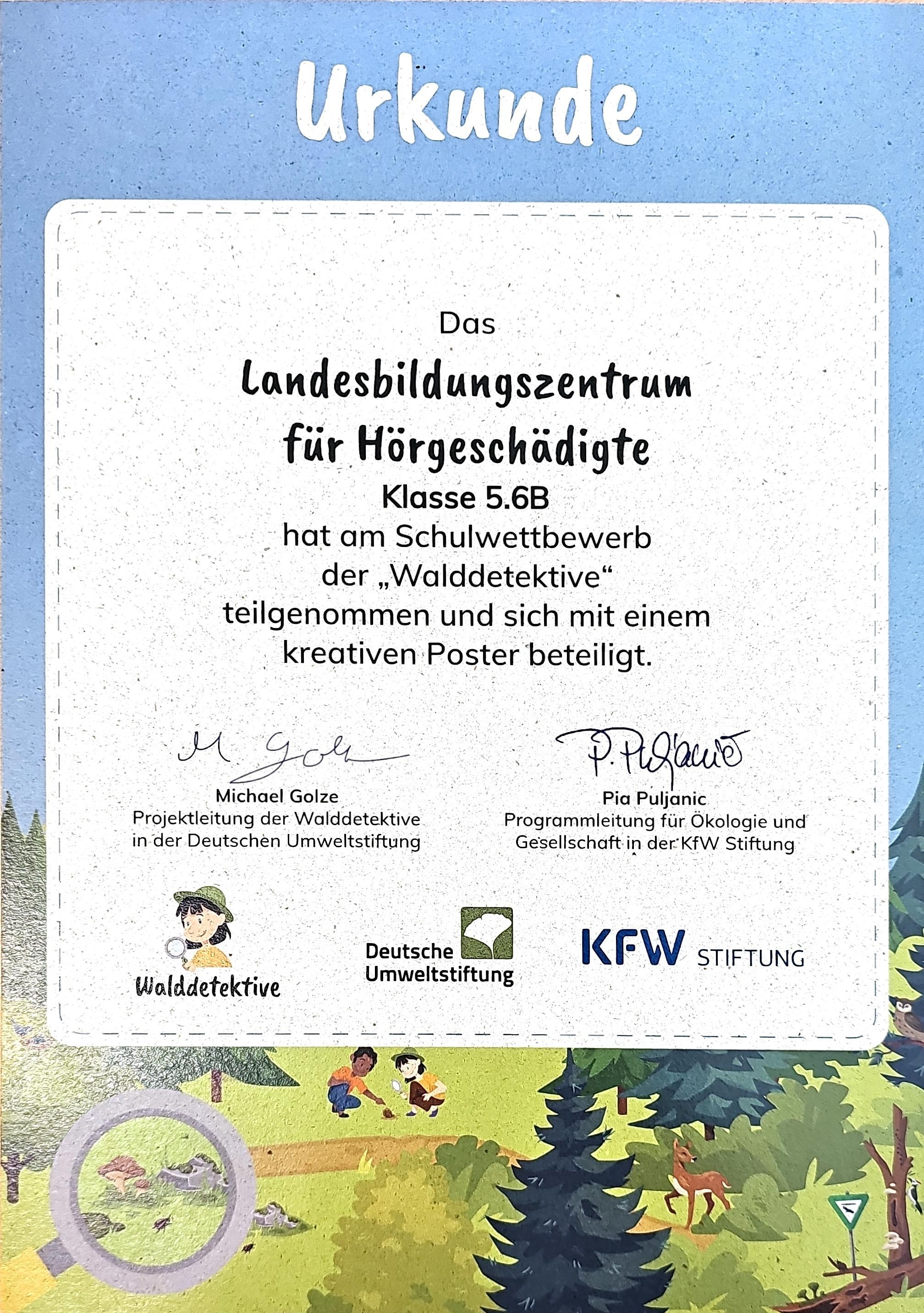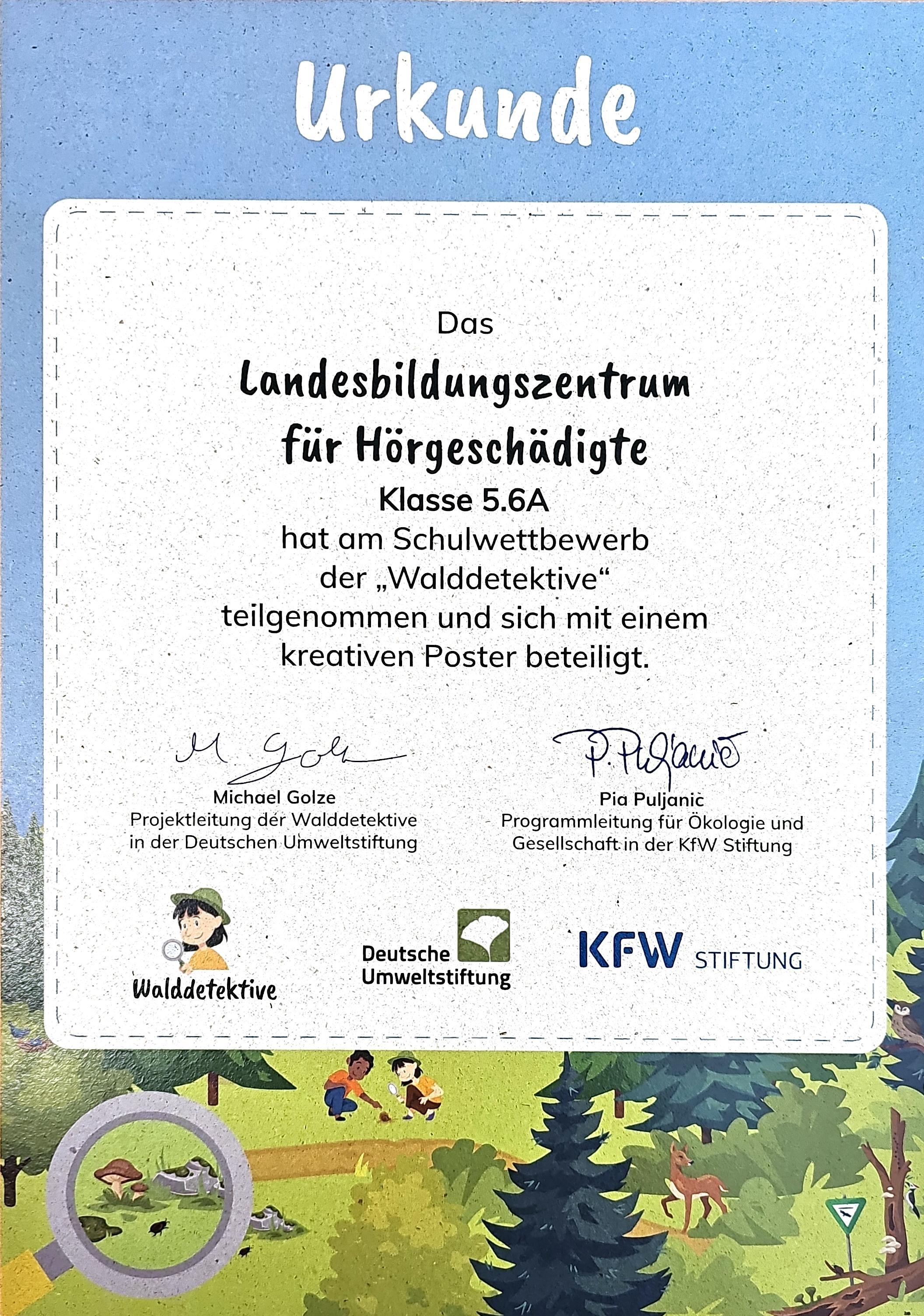 Die Klassen 5.6. und die 8. Klasse haben an einer Aktion der Umweltstiftung teilgenommen und sogar einen Waldrucksack gewonnen!