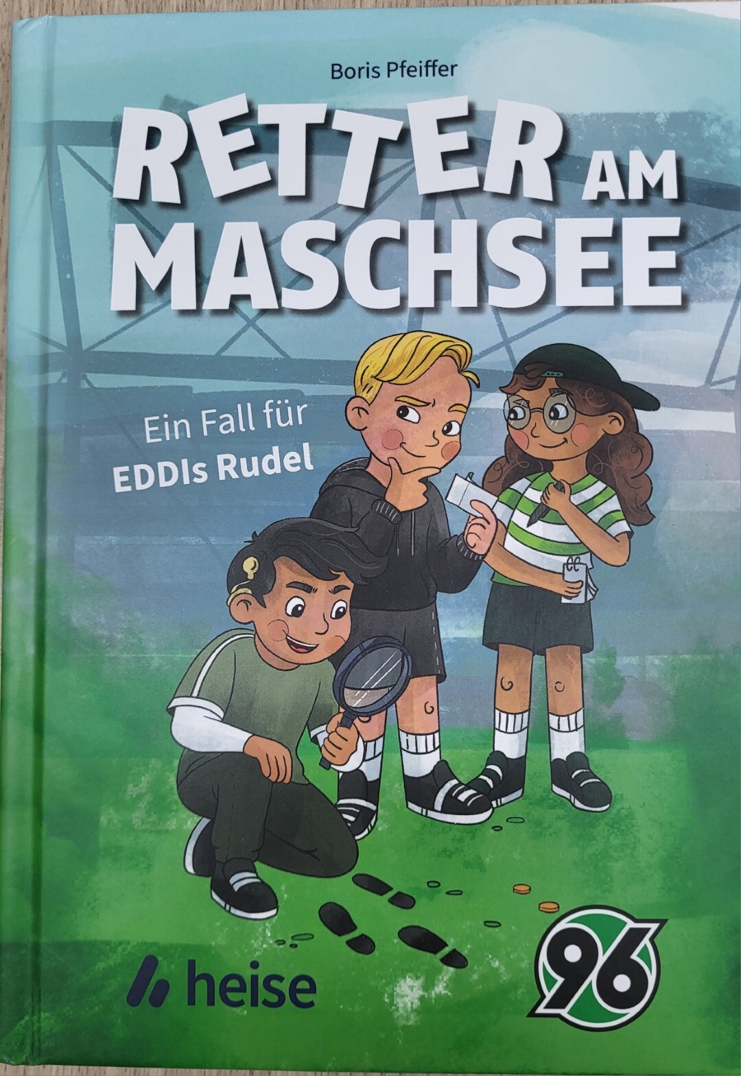 Vorgestellt wurde das Buch "Retter vom Maschsee. Ein Fall für EDDIs Rudel" von Boris Pfeiffer. Drei Kinder aus EDDIs Rudel, hörend und gehörlos, erleben dabei ein Abenteuer durch ganz Hannover. Boris Pfeiffer erzählt eine spannende Geschichte, in der es nicht nur um einen Diebstahl geht, sondern es gibt auch viele Informationen über Hannover 96 und EDDIs Rudel. Alle Schülerinnen und Schüler erlebten eine Pressekonferenz live, lernten den Cheftrainer Christian Titz persönlich kennen und bekamen ein signiertes Buch geschenkt.